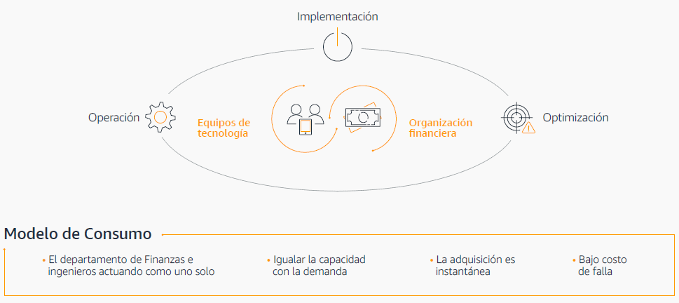 Existen distintos aspectos económicos de la Nube AWS sobre el consumo de tecnología. En el siguiente gráfico se representa esto: